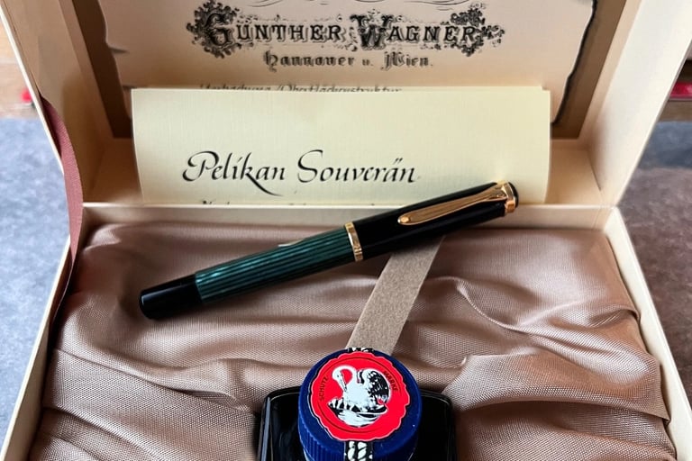 Vintage and modern Pelikan 400 fountain pens.